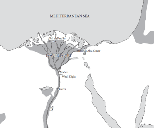 A fines de Naqada II (c. 3.350 a. C.), los centros de poder político egipcios –Hieracómpolis y Naqada en el Alto Egipto, y Maadi y Buto en el Bajo– se habían desarrollado tanto en el Norte como en el Sur, y las tradiciones locales comenzaron a fusionarse, a veces rápidamente, en un carácter egipcio nacional definible. Un trabajo reciente en Abidos en el Alto Egipto y Minshat Abu Omar en el Delta ha revelado que, aunque el Bajo y el Alto Egipto experimentaron etapas separadas de desarrollo, a finales de Naqada II, las características de la cultura del Alto Egipto estaban presentes en el Delta oriental.