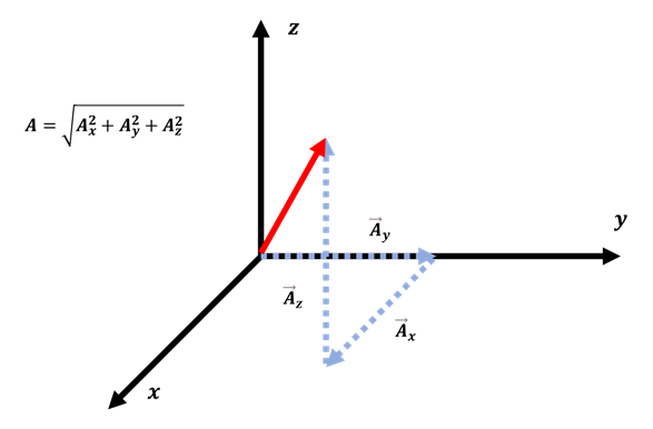 La suma o resta de dos cantidades vectoriales puede llevarse a cabo sumando o restando sus componentes, y luego, a partir de éstas, obteniendo la magnitud y la dirección del vector resultante. La determinación de vectores a partir de las componentes no se restringe al plano bidimensional, si no que puede utilizarse en el tridimensional, que cuenta con un eje z. Aquí, la relación entre vector y componentes sería: