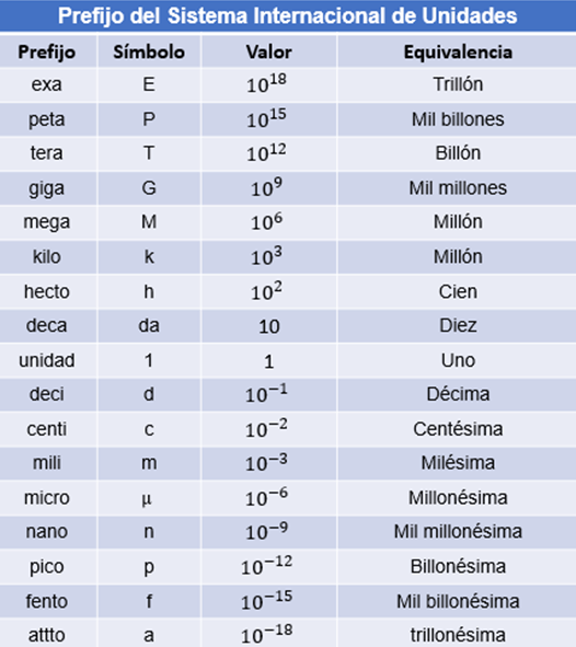 Además de los patrones estándar, otra ventaja significativa del SI respecto a otros sistemas de unidades es el uso de prefijos específicos para indicar determinados múltiplos de la unidad básica. Éstos se agregan al nombre de la unidad básica, y con ello queda claro que la cantidad de esta última se halla multiplicada por 10, 100, 1000 o 0.0001. El enorme provecho de esto es la posibilidad de manejar con facilidad elevadas magnitudes.