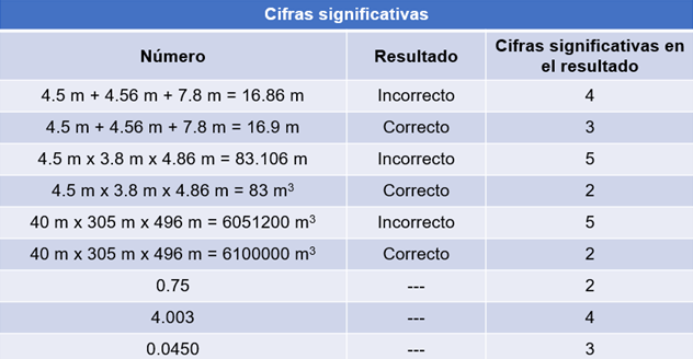 Los números obtenidos a partir de operaciones matemáticas con números inciertos también poseerán un grado de incertidumbre. Por regla general se acepta que al multiplicar o dividir números, el resultado no puede tener más cifras significativas que el factor que menos posee. Al sumar o restar números, por otra parte, lo que importa es la ubicación del punto decimal, de las cifras significativas, y así, el resultado no puede tener más decimales que el factor que menos tiene.