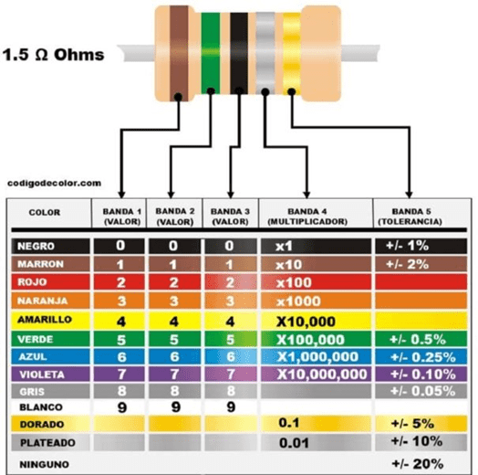 [3] Código de Color. Código de colores para resistencias de 5 bandas, Franjas o líneas. https://codigodecolor.com/electronica/resistencia-electrica/resistencia-de-5-bandas/