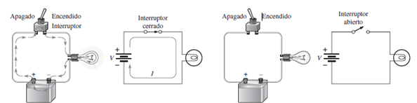 Lo anterior constituiría un circuito cerrado, en el que la corriente recorre una trayectoria completa. Ahora, cuando la corriente se interrumpe, el circuito se denomina abierto. Para controlar la apertura o el cierre de los circuitos eléctricos, se emplean los interruptores.